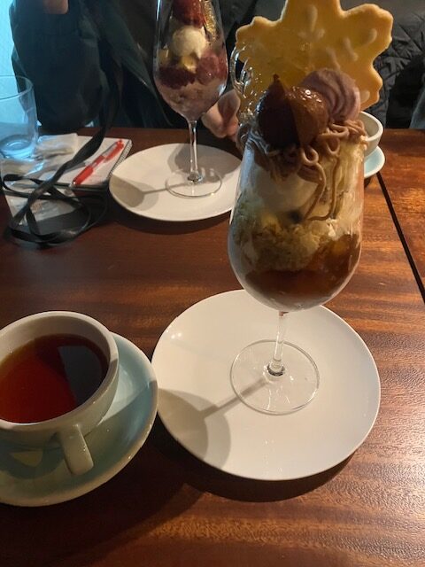 寝る前に、モンブラン&ほうじ茶パフェを食べるという罪深いダメ押しを楽しみ。