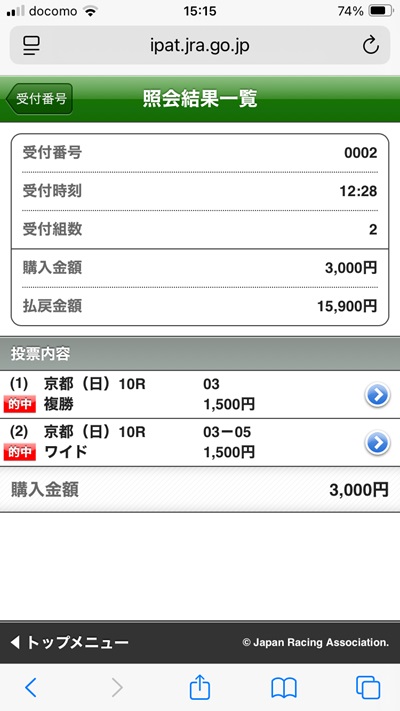 といっても、それを当てたうえで、菊花賞でドカン!を夢見ていたので(欲張りすぎ)、、、以下結果です。